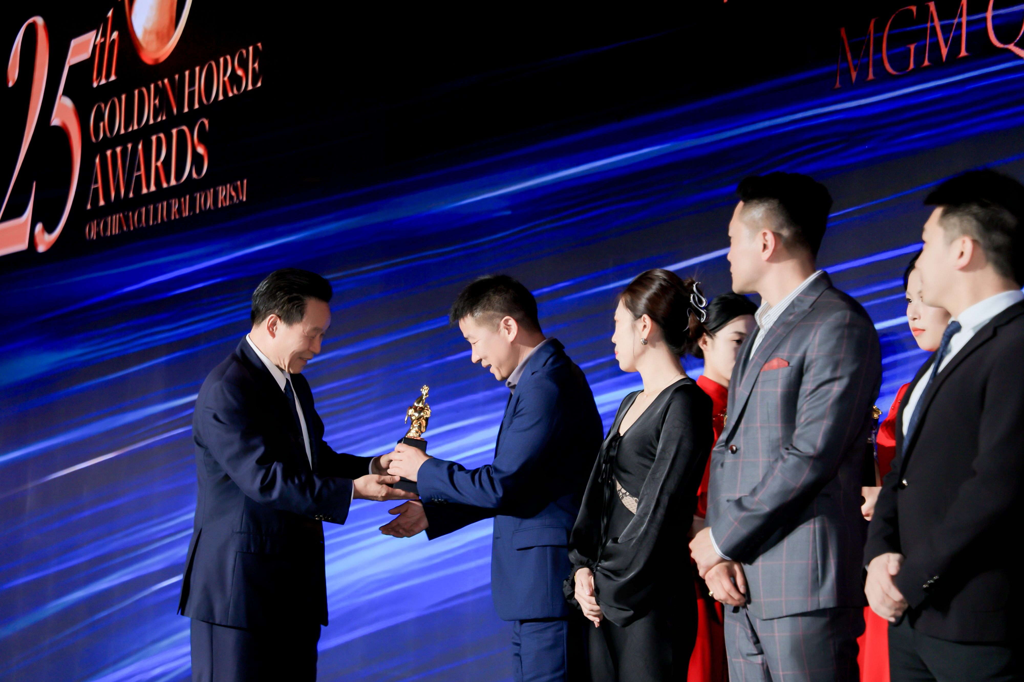 在第二十六届中国文旅金马奖盛典上举行庄重的颁奖典礼,为获奖者颁发荣誉证书、奖牌/勋章勋带(或奖座)。